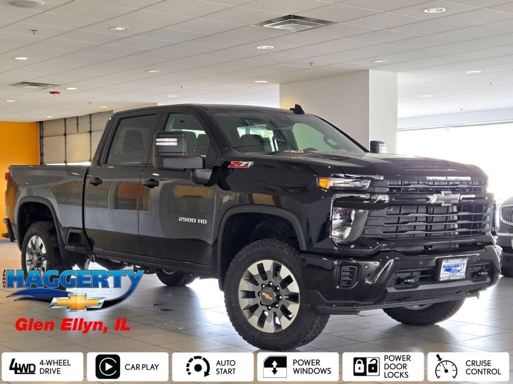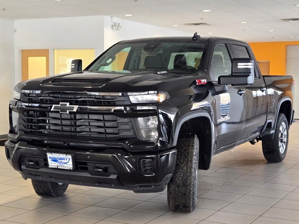 Black 2026 Chevrolet Silverado 2500HD Custom 4WD 10-Speed Automatic 6.6L V8 10-Speed Automatic, 4WD, Jet Black Cloth.