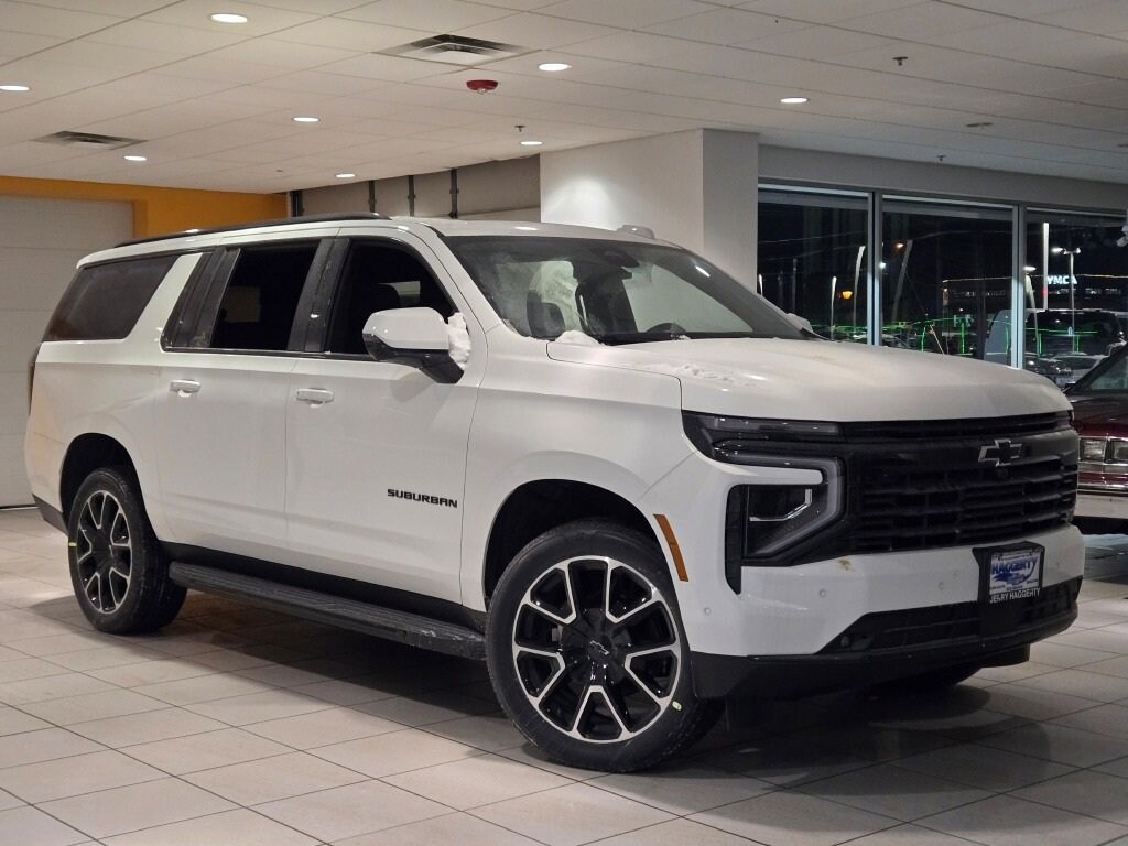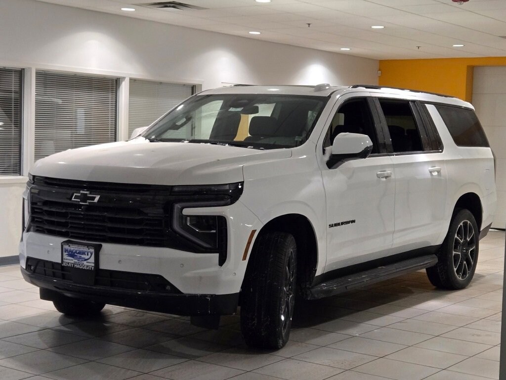 Summit White 2026 Chevrolet Suburban RST 4WD 10-Speed Automatic with Overdrive EcoTec3 5.3L V8For Value and Integrity, it has to be Haggerty! This Vehicle Features Advanced Trailering Package (Blind Zone Steering Assist with Trailering, Hitch View with Pan/Zoom Image Adjustment, and Smart Trailer Integration Indicator), Comfort Package (2nd Row Power Release 60/40 Split-Folding Bench Seat, 3rd Row 60/40 Power-Folding Split-Bench, Bose 10-Speaker Surround with CenterPoint, Heated 2nd Row Outboard Seats, Heated Power-Adjustable Outside Mirrors, Heated Steering Wheel, LED Headlamps with LED Daytime Running Lamps, LED Tail Lamps, and Memory Settings), License Plate Front Mounting Package, Max Trailering Package (2-Speed Active Electronic AutoTrac Transfer Case, Hill Descent Control, and Integrated Trailer Brake Controller), Preferred Equipment Group 1SP (8-Way Power Front Passenger Seat Adjuster, Auto-Dimming Inside Rear-View Mirror, Bright Front and Rear Door Sill Plates, Dual Exhaust System, Front LED Fog Lamps, Heated Driver and Front Passenger Seats, Interior Camera, Memory Settings For Driver, Rear Power Liftgate, RST Exterior Features, Universal Home Remote, Wheel Locks (set of 4), Wheels: 22 x 9 Bright Machined, and Wireless Phone Charging), 2-Way Driver Power Lumbar Seat Adjuster, 2-Way Front Passenger Power Lumbar Seat Adjuster, 3.23 Rear Axle Ratio, 3rd row seats: split-bench, 4-Wheel Disc Brakes, 6 Speakers, 6-Speaker Audio System, 8-Way Power Driver Seat Adjuster, ABS brakes, Air Conditioning, Alloy wheels, AM/FM radio: SiriusXM with 360L, Apple CarPlay/Android Auto, Auto High-beam Headlights, Auto-dimming Rear-View mirror, Automatic temperature control, Brake assist, Bumpers: body-color, Compass, Delay-off headlights, Driver door bin, Driver vanity mirror, Dual front impact airbags, Dual front side impact airbags, Dual-Pane Power Panoramic Sunroof, Electronic Stability Control, Emergency communication system: OnStar Services capable, Exterior Parking Camera Rear, Extra Capacity Cooling System, Four wheel independent suspension, Front anti-roll bar, Front Bucket Seats, Front Center Armrest, Front dual zone A/C, Front fog lights, Front reading lights, Fully automatic headlights, Garage door transmitter, Heated door mirrors, Heated front seats, Illuminated entry, Low tire pressure warning, Memory seat, Navigation system: Google built-in compatibility (select service plan required, terms and limitations apply), Occupant sensing airbag, Outside temperature display, Overhead airbag, Overhead console, Panic alarm, Passenger door bin, Passenger vanity mirror, Perforated Leather Seating Surfaces, Power door mirrors, Power driver seat, Power Liftgate, Power passenger seat, Power Release 2nd Row Bucket Seats, Power steering, Power windows, Premium Smooth Ride Suspension, Radio data system, Radio: 17.7 Diagonal Advanced Color LCD Display, Rain sensing wipers, Rear air conditioning, Rear anti-roll bar, Rear reading lights, Rear seat center armrest, Rear window defroster, Rear window wiper, Remote keyless entry, Security system, SiriusXM with 360L Trial Subscription, Speed control, Speed-sensing steering, Split folding rear seat, Spoiler, Steering wheel mounted audio controls, Tachometer, Telescoping steering wheel, Tilt steering wheel, Traction control, Trip computer, Variably intermittent wipers, Voltmeter, and Wireless Apple CarPlay/Wireless Android Auto.